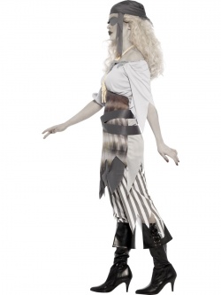 Ghost Ship Shipwrecked Sweetie Costume, Grey, With Dress, Leggings, Belt, Eye Patch and Bandana