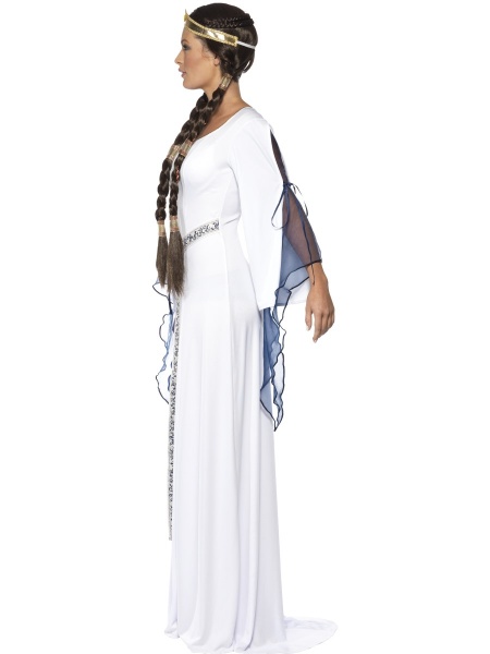 Medieval Maid Costume, White, With Dress, Belt and Headpiece